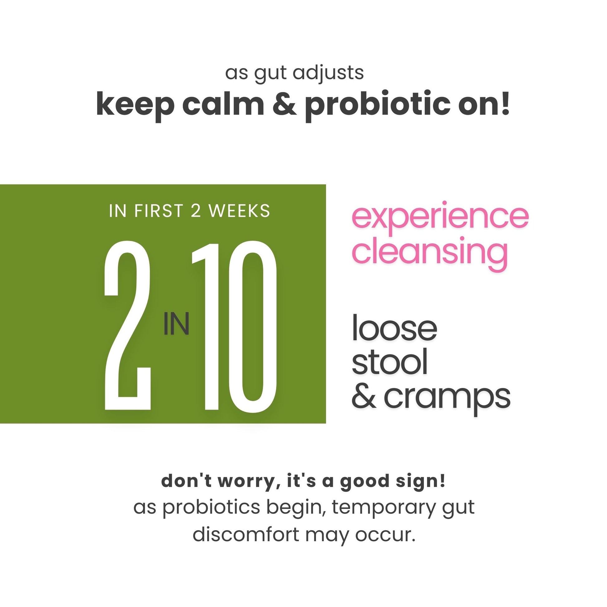 We strive to inform all of our customers that probiotics generally need a longer duration to show noticeable benefits. Short-term usage may not yield results for everyone, as achieving lasting digestive wellness and gut health often requires a sustained approach.